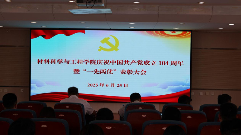 6月25日,材料学院庆祝中国共产党成立104周年暨“一先两优”表彰大会在知行楼召开。学院党委委员、领导班子成员、师生党支部代表、全体受表彰先进集体代表和优秀个人参加会议。会议由学院党委副书记、副院长黄晓颖主持。