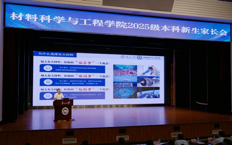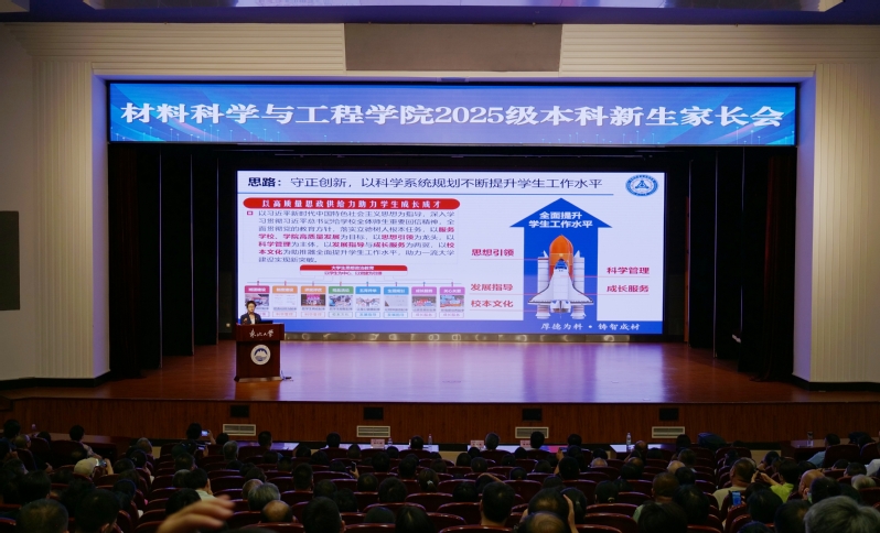 8月24日下午,材料科学与工程学院在汉卿会堂蔡冠深报告厅举行了2025级本科新生家长会。学院院长王建军、学院领导班子成员及500余名新生家长参会。
