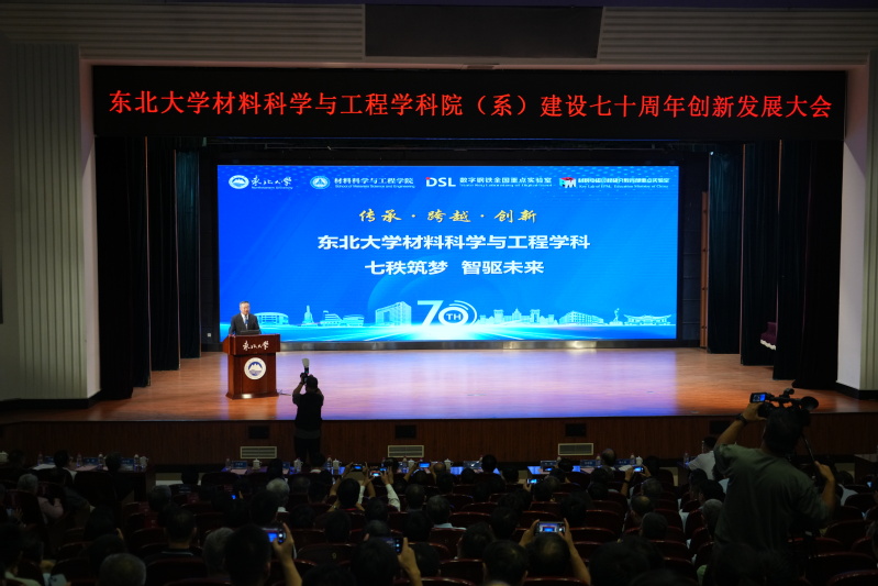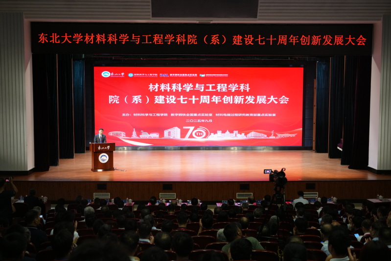 七秩弦歌砺奋进,万里笃行赴新程。在习近平总书记给全体师生回信两周年之际,东北大学材料科学与工程学科院(系)建设70周年创新发展大会于9月14日在汉卿会堂蔡冠深报告厅召开。中国工程院院士、华北理工大学校长张福成,中国金属学会理事长张晓刚,沈阳化工大学党委副书记、副校长秦高梧,大连交通大学副校长管仁国,东北大学党委书记郭海,中国工程院院士、东北大学材料学院教授王国栋,中国科学院金属研究所原所长、东北大学材料学院教授左良,东北大学党委副书记、副校长、中国工程院院士唐立新,党委副书记、秦皇岛分校党委书记张玉宝,副校长徐伟出席大会。国内知名高校材料学院院长、书记,校友代表、离退休教师代表、曾在学院工作的教工代表,以及材料学院、数字钢铁全国重点实验室、材料电磁过程研究教育部重点实验室师生代表参加大会。大会由学院党委书记于海钢主持。