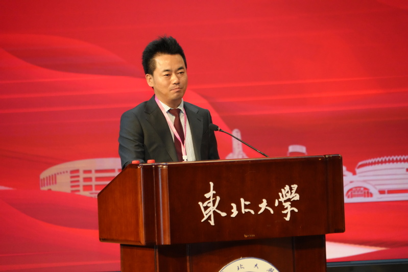 北京航空航天大学材料科学与工程学院院长赵立东作为兄弟院系代表向大会致辞,盛赞东北大学材料学科70年坚守“为国铸材”初心,在奠定基础材料学科体系、攻克高端装备关键材料难题、成为新材料产业“人才摇篮”等方面成就卓越。赵立东表示,回望两校材料学科以“心手相牵”情谊在学术、人才、科研上的协同合作,期待未来聚焦“卡脖子”问题深入联合攻关,共谋新材料发展新篇章。