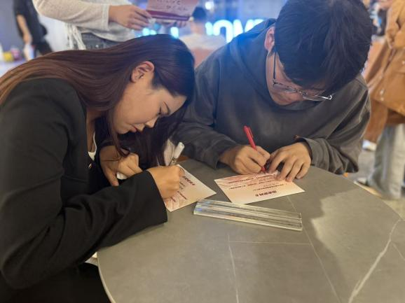 观影后,同学们纷纷在卡片上写下观后感,将对历史的感悟凝练为字句,让爱国情怀跃然纸上,让责任担当铭记心间。
