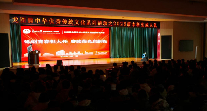 2025年10月19日晚,材料科学与工程学院于大学生活动中心多功能厅举办了2025级本科生入党启蒙教育大会暨成人礼活动。材料学院腐蚀与防护中心王福会教授、材料学院党委副书记兼副院长黄晓颖、学院学生工作干部代表及全体2025级本科生参加活动。