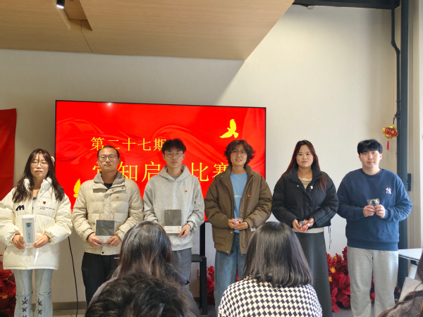比赛以“限时抢答”形式开展,以团队为单位,通过PPT展示题目,内容覆盖党的创新理论、党章核心章节、党员义务、党史、组织生活等。参赛队员依据规则积极抢答,工作人员现场判定答题权,队员抢到答题权后需快速作答,最终按答题正确率及速度决出奖项。2504党支部许静获一等奖;2505党支部丁功科、2507党支部陆正修获二等奖;2502党支部李涵、2505党支部崔新然、2506党支部刘桐杉获三等奖。颁奖环节后,现场还播放了党章知识视频,帮助大家进一步巩固党章核心内容,深化对党的理论知识的理解。