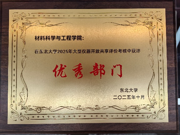 10月23日,2025年大型仪器开放共享表彰暨工作推进会在主楼822室召开,对2024年全校27个部门的大型仪器设备管理及使用情况考核结果进行表彰,我院获评“优秀部门”(全校2个),扫描电子显微镜机组(艾峥嵘、赵卓、张星硕)获评“优秀机组”(全校5个),电子万能试验机机组、X射线衍射仪机组、场发射透射电镜机组获评“良好机组”(全校15个)。