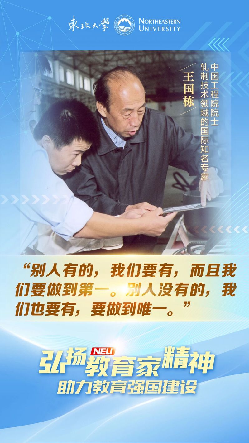 “老英雄孟泰,王崇伦和万能工具胎,张明山和反围盘,我是听着他们的故事长大的。”王国栋说。为了学习喜爱的专业,大学填报志愿时,他填报了东北工学院钢铁冶金系钢铁压力加工专业。