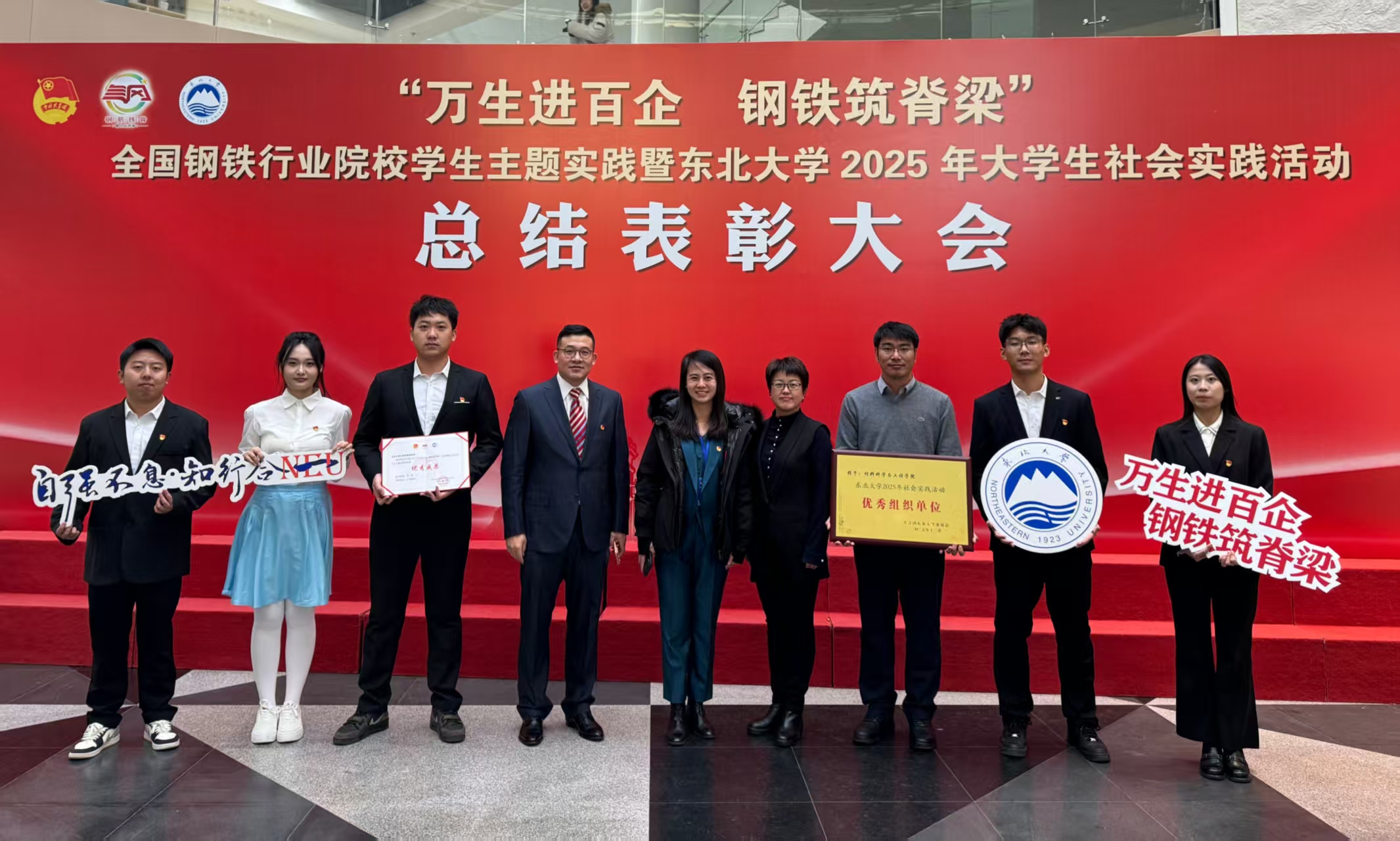 近日,“万生进百企、钢铁筑脊梁”全国钢铁行业院校学生主题实践暨东北大学2025年大学生暑期社会实践活动总结表彰大会在东北大学举办。由商淼老师指导,材料学院红色梦想实践团完成的《体悟钢铁伟力,厚植钢铁情怀》获全国钢铁行业院校学生主题实践优秀成果,团队成员贾梦妍作为优秀团队学生代表分享暑期实践成果与成长感悟。