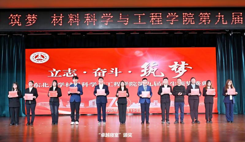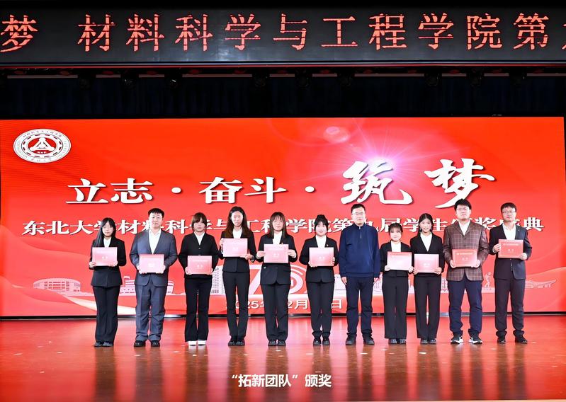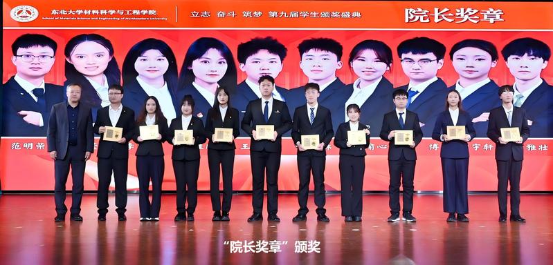 12月15日晚,材料科学与工程学院“立志·奋斗·筑梦”第九届学生年度颁奖盛典在大学生活动中心多功能厅举行。校团委书记张忠英、创新创业学院常务副院长李鹤、学生工作处副处长韩磊、学生指导服务中心副主任石昌远、张学良教育基金会办公室副主任展成,学院党委书记于海钢、院长王建军等学院班子成员,优秀专业教师代表、班导师代表、学工办全体学生干部及2025级本科生参加典礼。宁波创润新材料有限公司、辽宁红银金属有限公司、仪景通光学科技(上海)有限公司、沈阳元杰光学技术有限公司等负责人受邀出席。