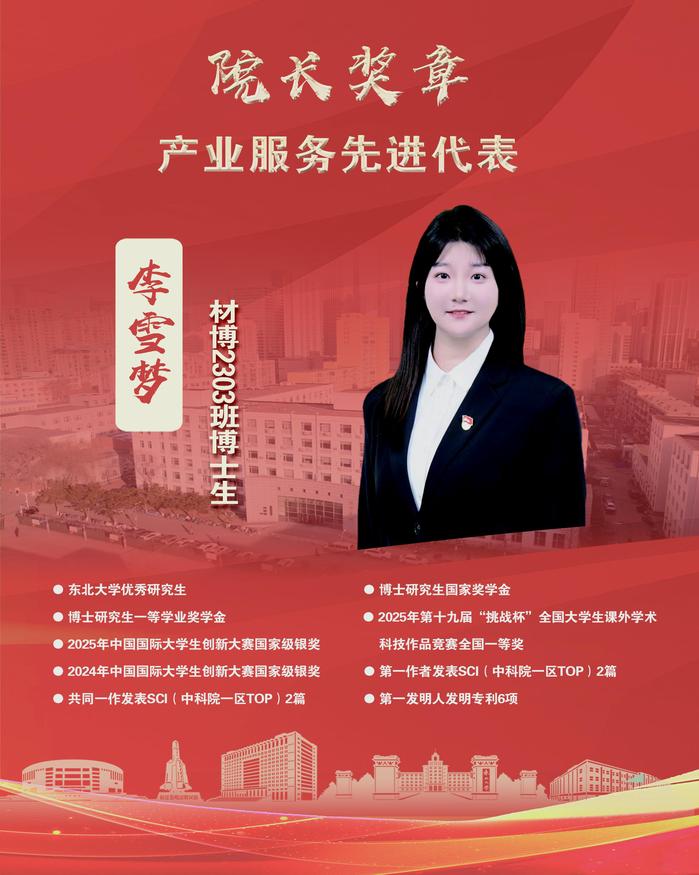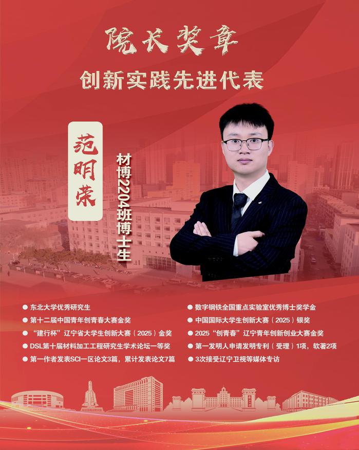 “让理论研究走出实验室,在轧钢生产线上落地生金”是她不变的科研初心。她的每一项发明、每一篇论文,都瞄准着让钢铁生产更精准、更高效的目标,生动诠释了将科技转化为生产力的青年担当。她是“院长奖章”获得者——2023级博士生:李雪梦!