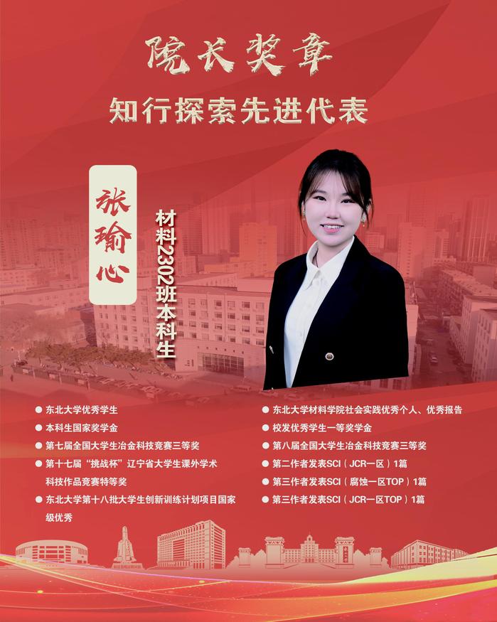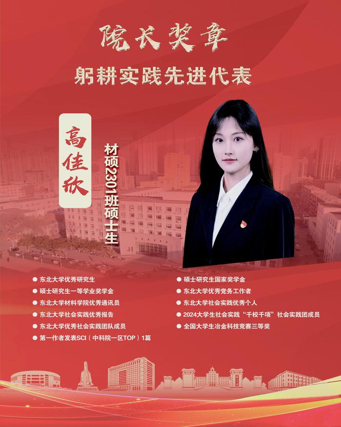 为强化理想信念引领,助推优秀朋辈领航,传播优秀文化,赋能学生成长发展指导体系,营造比学赶超,奋勇争先的优良学风,学院将2025年“院长奖章”获奖学生事迹作如下展示。让我们共同见证优秀东大材料学子代表们的卓越风采!