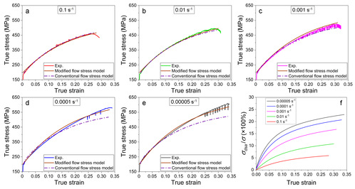 与传统模型相比,我们发展的新模型在0.00005-0.1 s-1宽应变速率范围内更好地预测了合金的流变行为,如图3所示。